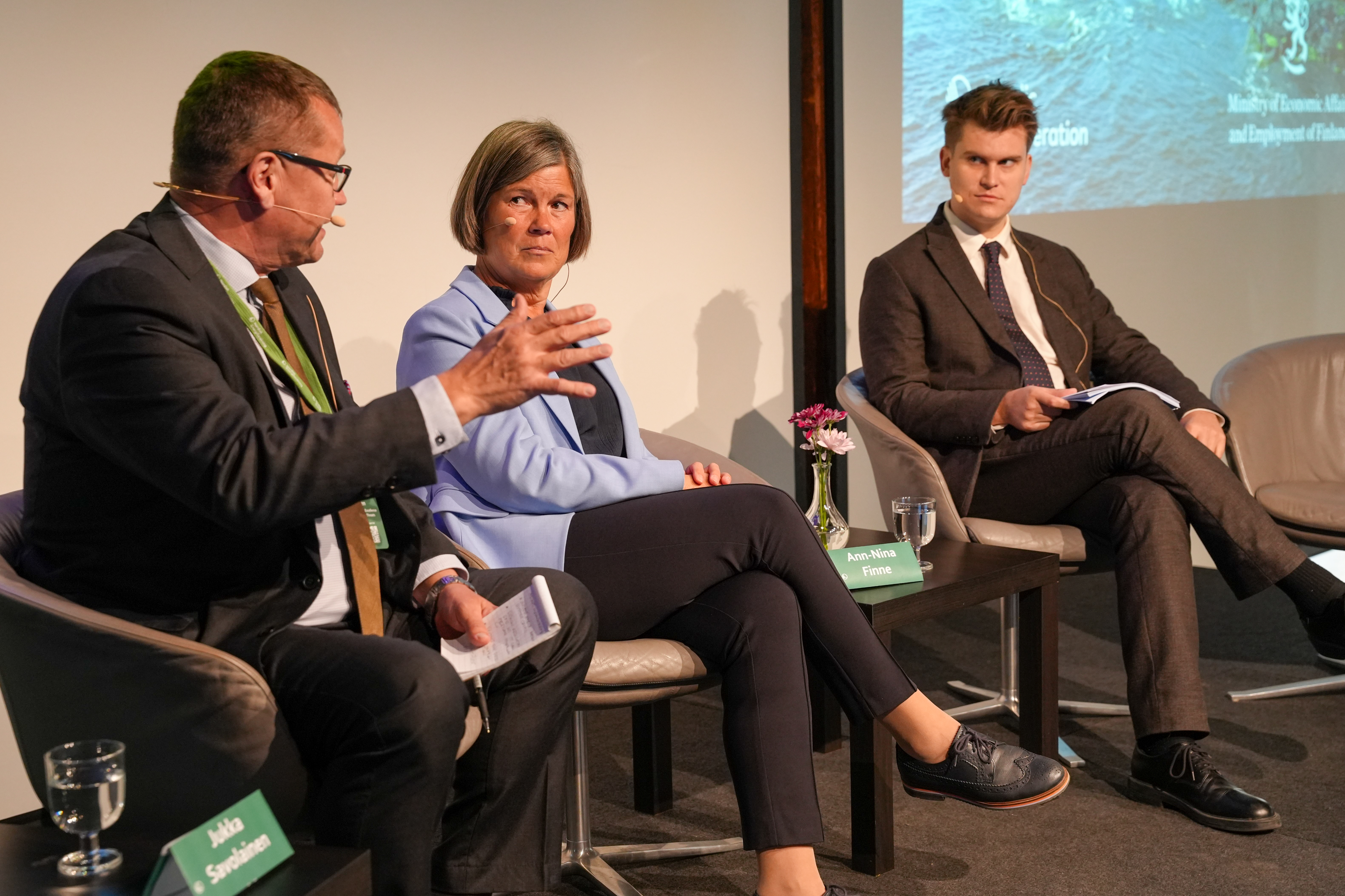 From left: Jukka Savolainen, European Centre of Excellence for Countering Hybrid Threats, Ann-Nina Finne, Founder, Senior Executive Advisor, Finne Advisory, and Jóhann Páll Jóhannsson, Minister of the Environment, Energy and Climate, Iceland.